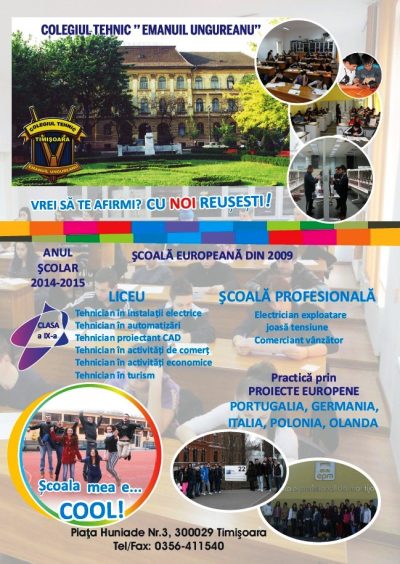 Colegiul Tehnic Emanuil Ungureanu este o şcoală europeană inca din anul 2009 care oferă studentilor ei o educaţie de calitate, corespunzătoare nevoilor de schimbare ale societăţii şi cerinţelor pieţei forţei de muncă în România şi în Uniunea Europeană.